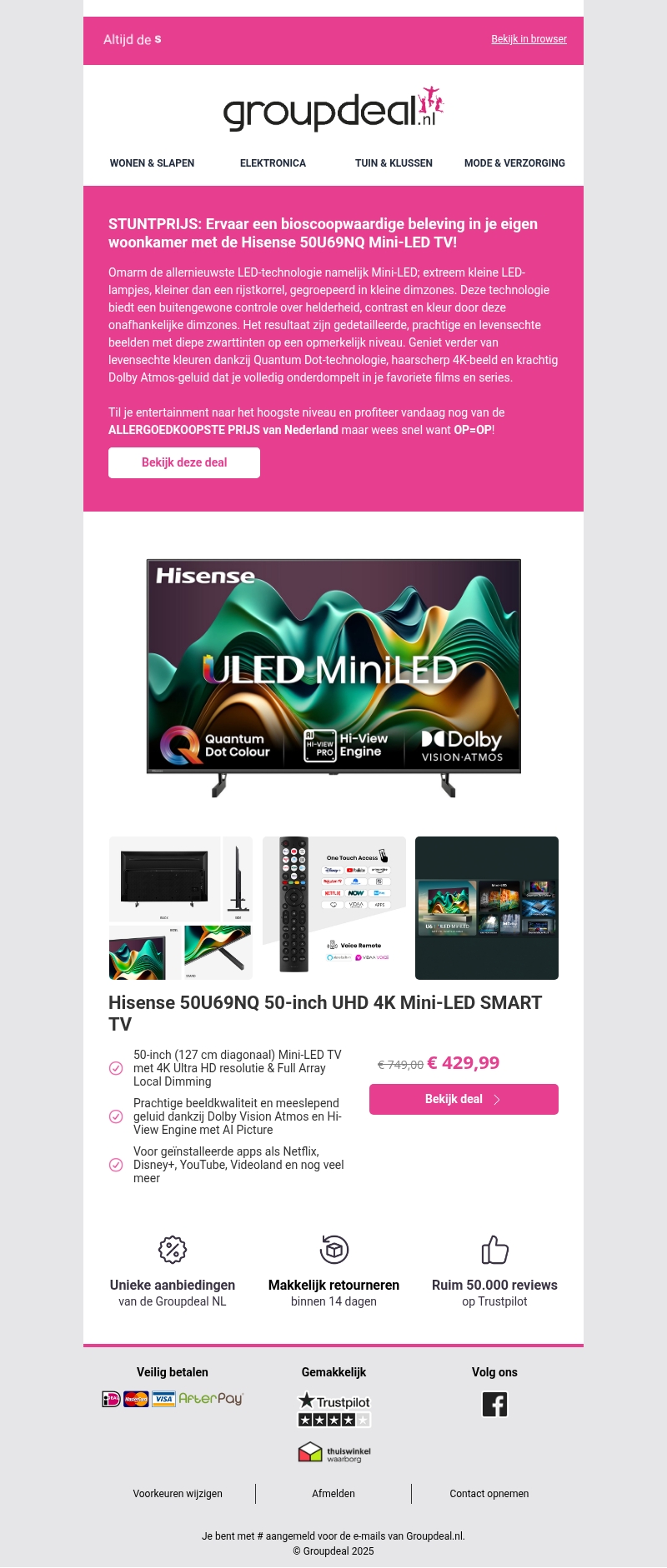 STUNTPRIJS: Ervaar een bioscoopwaardige beleving in je eigen woonkamer met de Hisense 50U69NQ Mini-LED TV! πΊπΌ