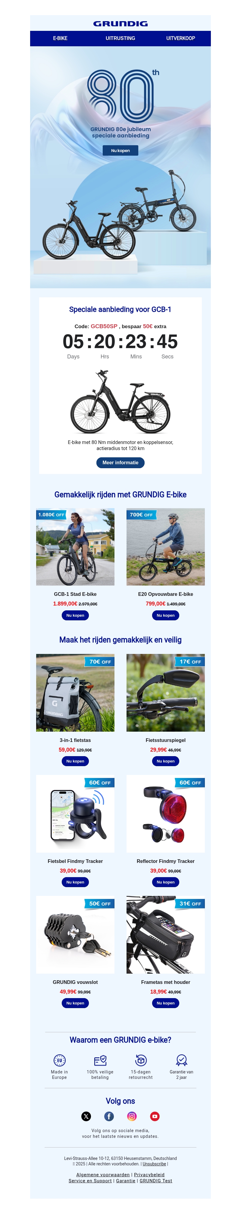 🎉Viering van de 80e verjaardag van GRUNDIG! Exclusieve GRUNDIG E-Bike aanbiedingen binnenin