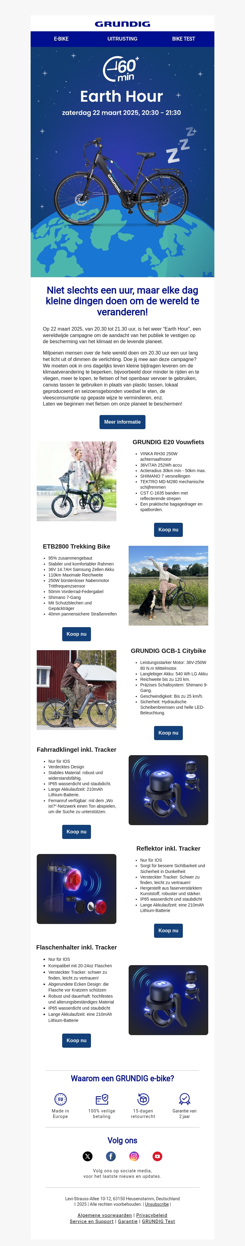 Grundig nodigt je uit voor Earth Hour op 22 maart 2025, waar de focus ligt op duurzame verandering. Maak kennis met hun innovatieve e-bikes en eco-vriendelijke accessoires. Investeer in de toekomst met comfortabele en betrouwbare fietsmodellen, perfect voor alledaags gebruik.