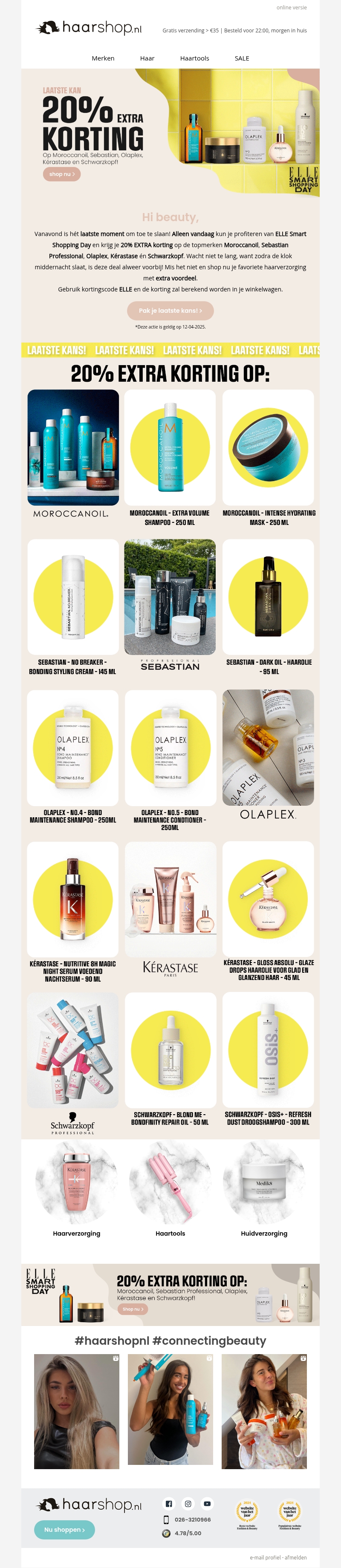 ⏰ 20% EXTRA korting op Moroccanoil, Sebastian, Olaplex, Kérastase én Schwarzkopf