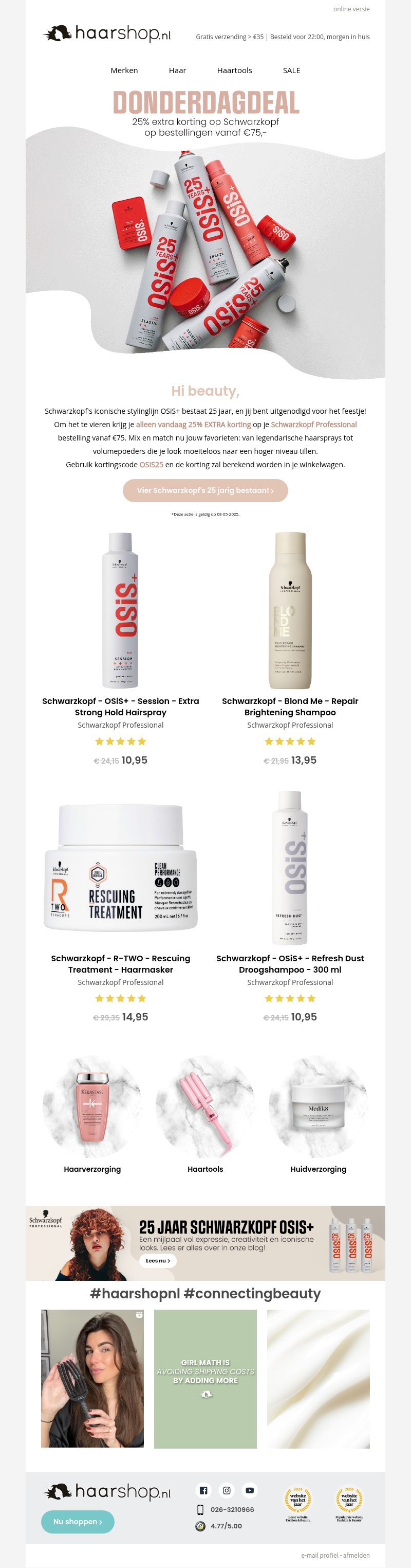 25 jaar OSiS+ = 25% EXTRA korting op Schwarzkopf! ๐