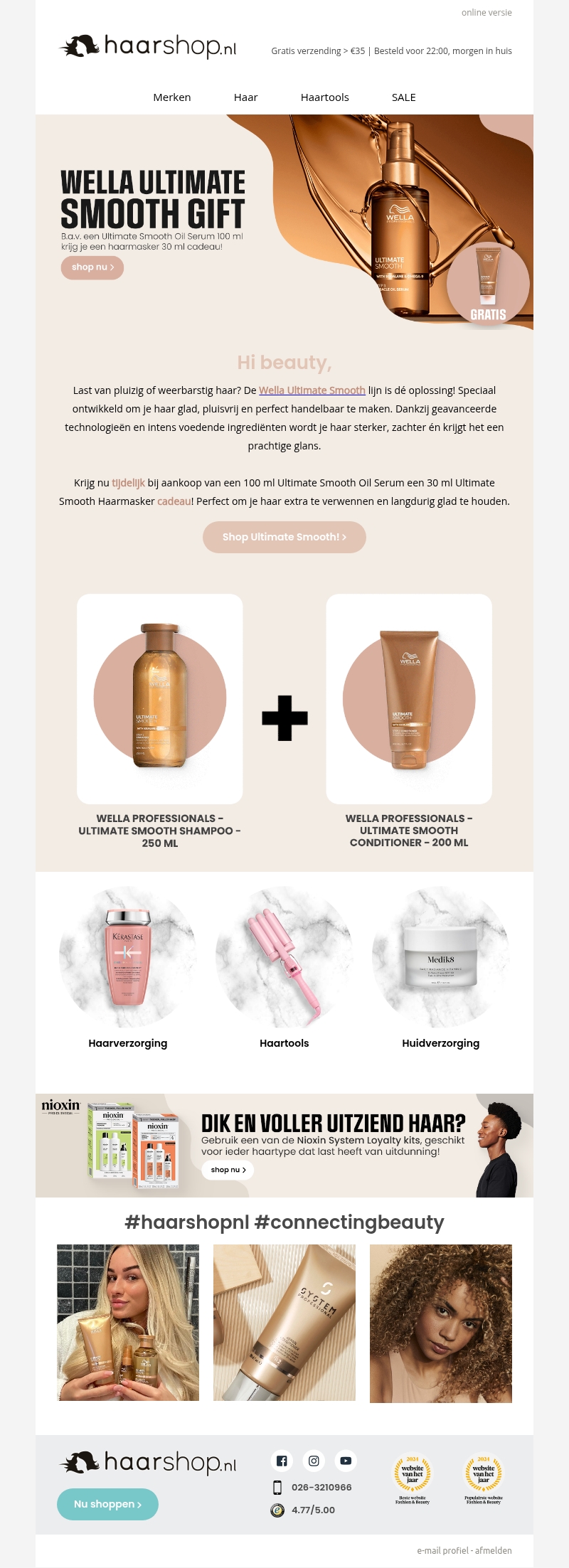 Ervaar de kracht van Wella Ultimate Smooth voor pluisvrij en glanzend haar. Bestel nu en ontvang tijdelijk een gratis haarmasker bij aankoop van een 100 ml Ultimate Smooth Oil Serum. Perfect om je haar te versterken en extra te verzorgen.