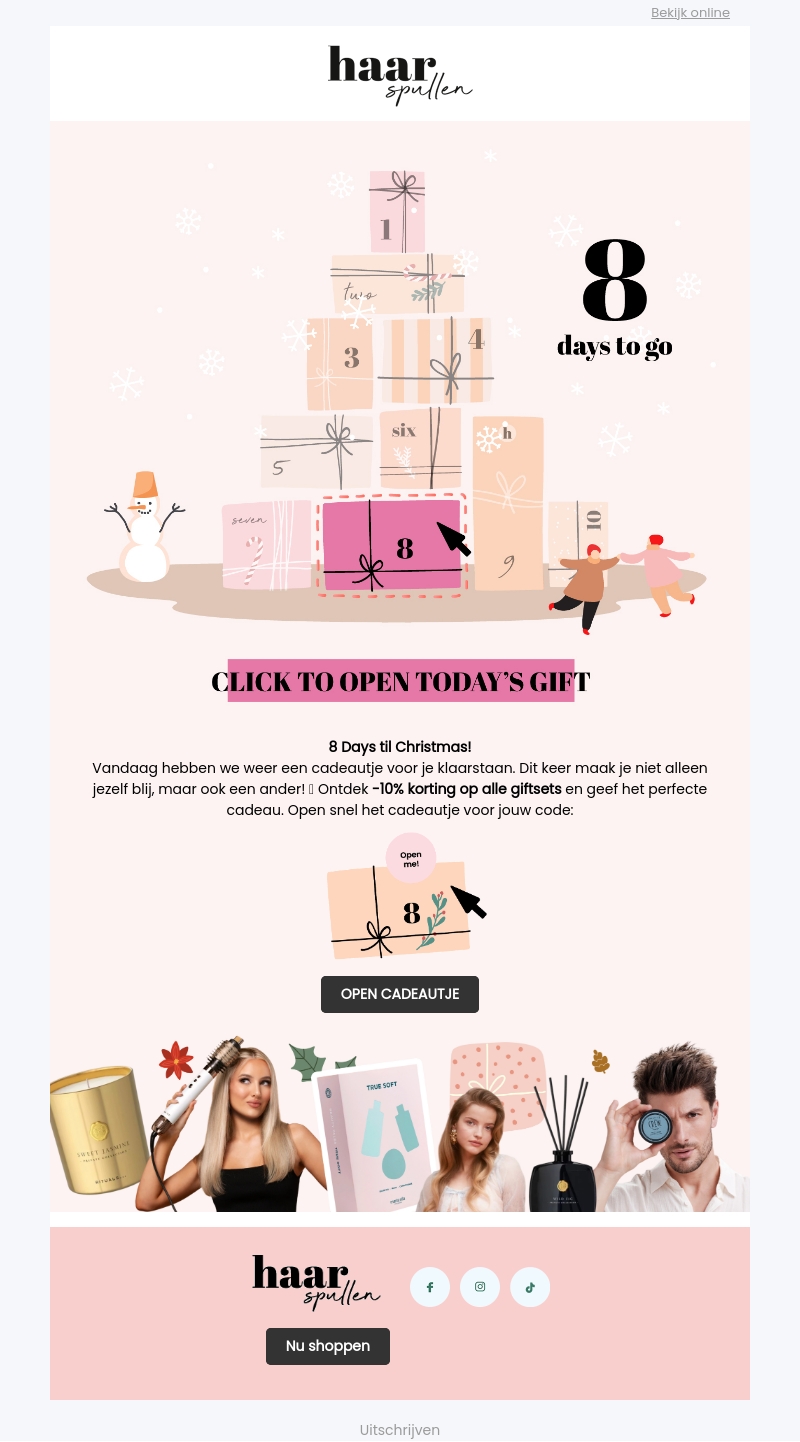 Vandaag is er weer een speciaal cadeau voor jou beschikbaar! Met een aantrekkelijke -10% korting op alle giftsets maak je jezelf en anderen blij. Wacht niet langer en ontdek snel wat er voor jou klaarstaat. Open jouw cadeau en vier het aftellen naar Kerstmis.