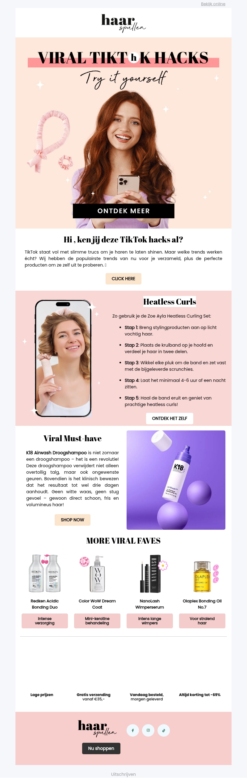 Maak kennis met de nieuwste TikTok-hacks voor prachtig haar. Of je nu op zoek bent naar heatless curls of een revolutie in droogshampoo, wij hebben de perfecte producten voor jou verzameld. Laat je inspireren door virale beautytrends die je haar laten stralen.