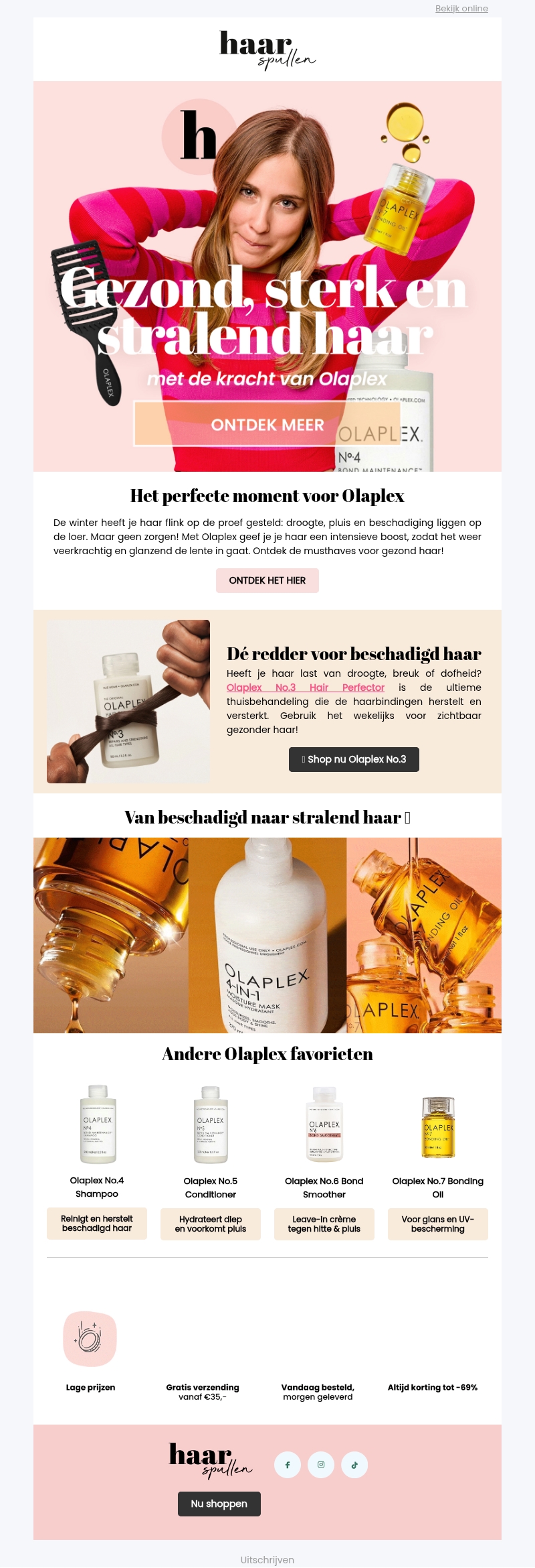 De winter heeft je haar op de proef gesteld, maar Olaplex biedt de perfecte oplossing! Herstel je haar met de Olaplex No.3 Hair Perfector en breng het van schade naar glans. Versterk je haar deze lente met onze aanbevolen producten voor een langdurig gezond resultaat.