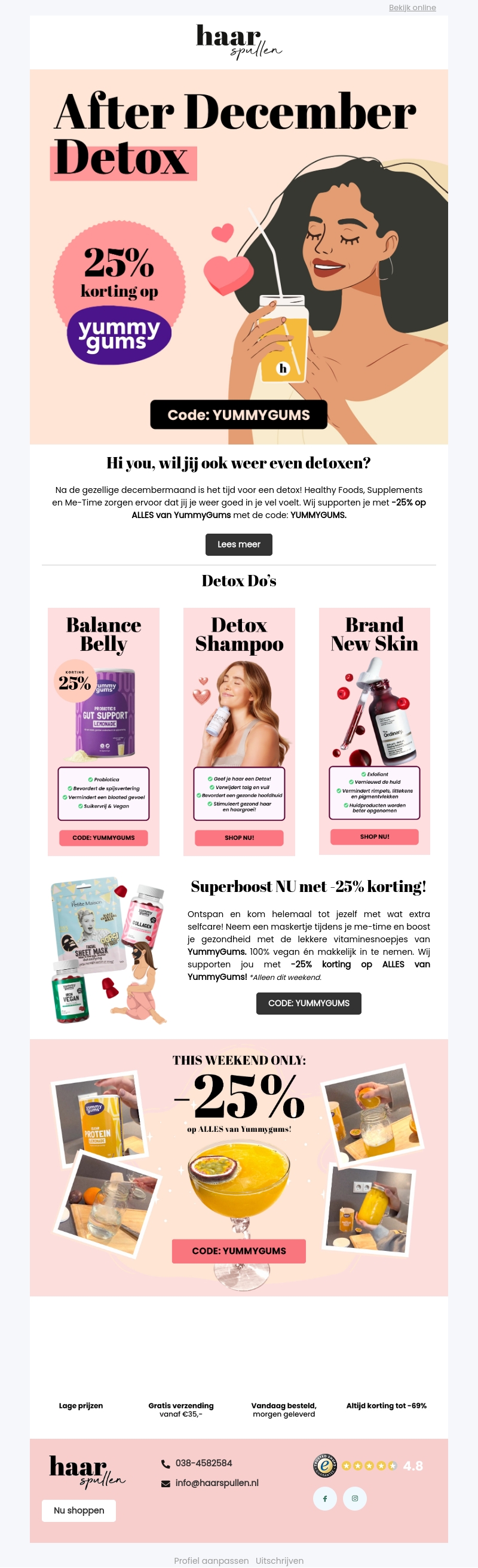 Het is tijd om te detoxen na een feestelijke decembermaand! Geniet van 25% korting op alles van YummyGums met de code YUMMYGUMS. Of je nu je buik, haar of huid wilt vernieuwen, wij hebben de perfecte producten voor jou. Profiteer van onze speciale weekendkorting en voel je weer op je best. Mis deze kans niet op geweldige aanbiedingen!