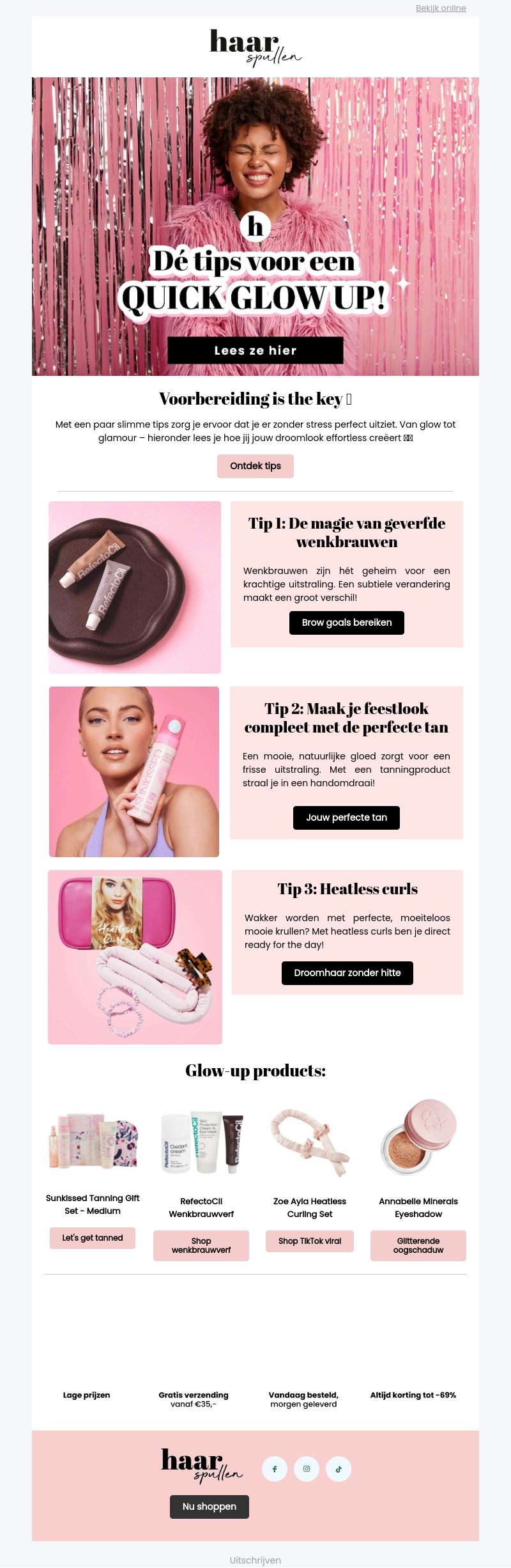 Bereid je voor op Oud & Nieuw met handige beauty tips. Leer alles over geverfde wenkbrauwen, de perfecte tan en moeiteloze krullen zonder hitte. Ontdek ook onze glow-up productselectie voor jouw droomlook zonder stress.