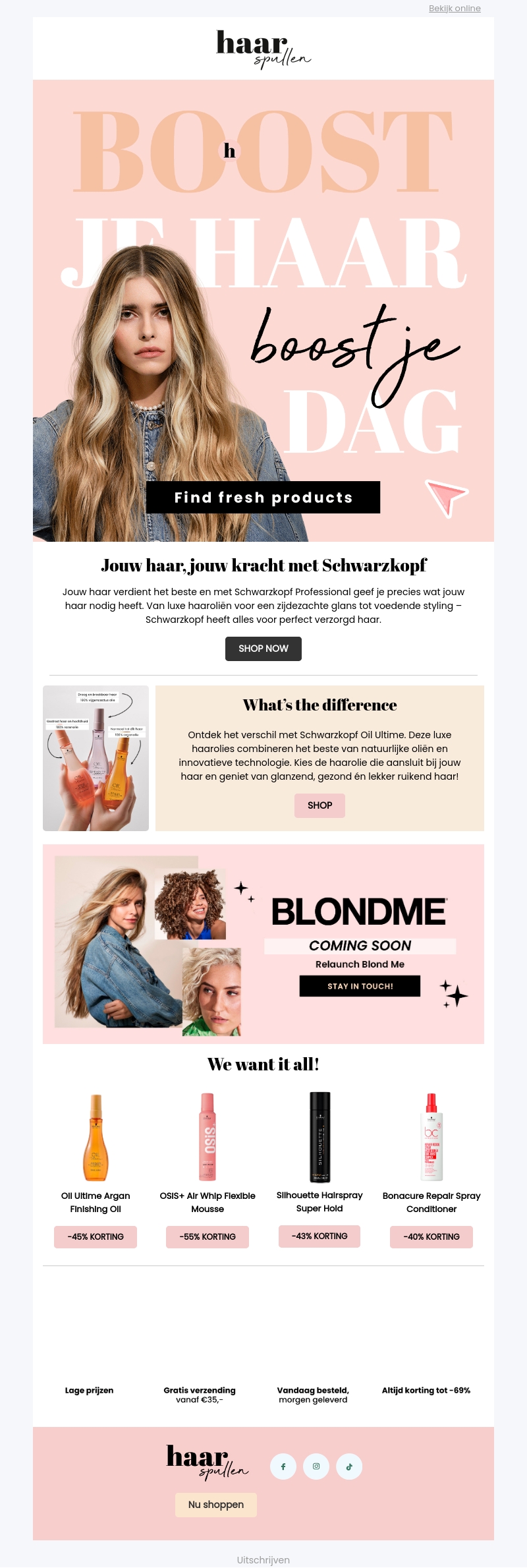 Geef je haar de boost die het nodig heeft met de nieuwste producten van Schwarzkopf. Ontdek luxe haaroliën en innovatieve styling voor stralend en gezond haar. Mis de exclusieve kortingen niet en blijf op de hoogte van nieuwe lanceringen.