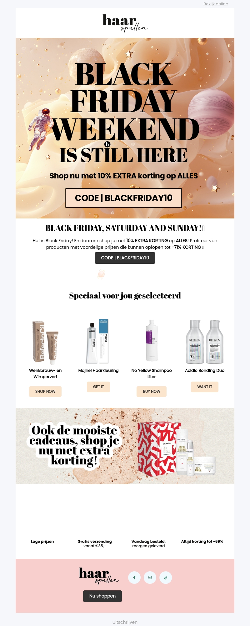 Mis de kans niet om te profiteren van 10% extra korting op alles tijdens het verlengde Black Friday Weekend. Haal jouw favoriete producten nu met tot wel 71% korting op geselecteerde items. Gratis verzending vanaf €35,- en vandaag besteld is morgen in huis.