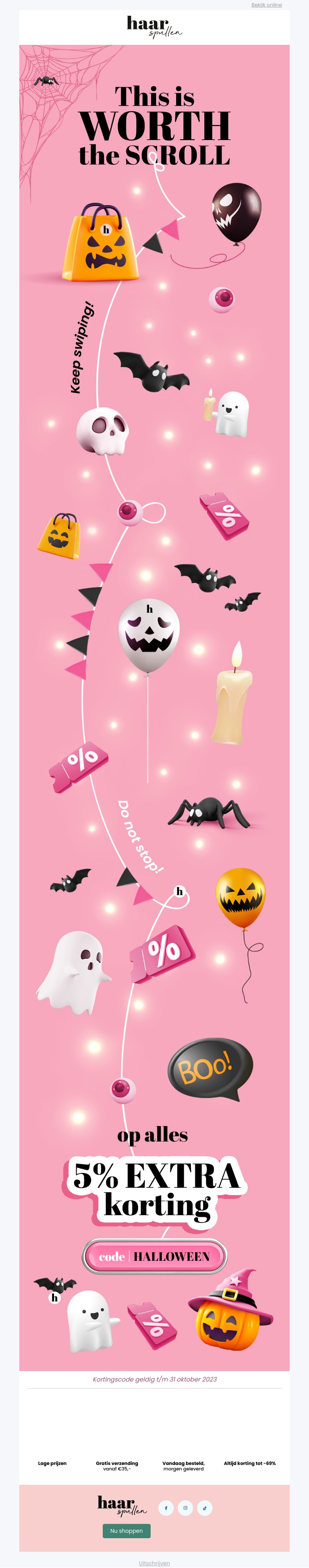 Het is tijd voor een spooktacular shopping ervaring met onze Halloween deals! Ontvang 5% extra korting op al jouw favorieten. Gebruik de kortingscode 'HALLOWEEN' en shop voordelig. Mis deze speciale aanbieding niet en bespaar groots. Verwen jezelf met lage prijzen en gratis verzending vanaf €35. Alleen geldig tot 31 oktober 2023.