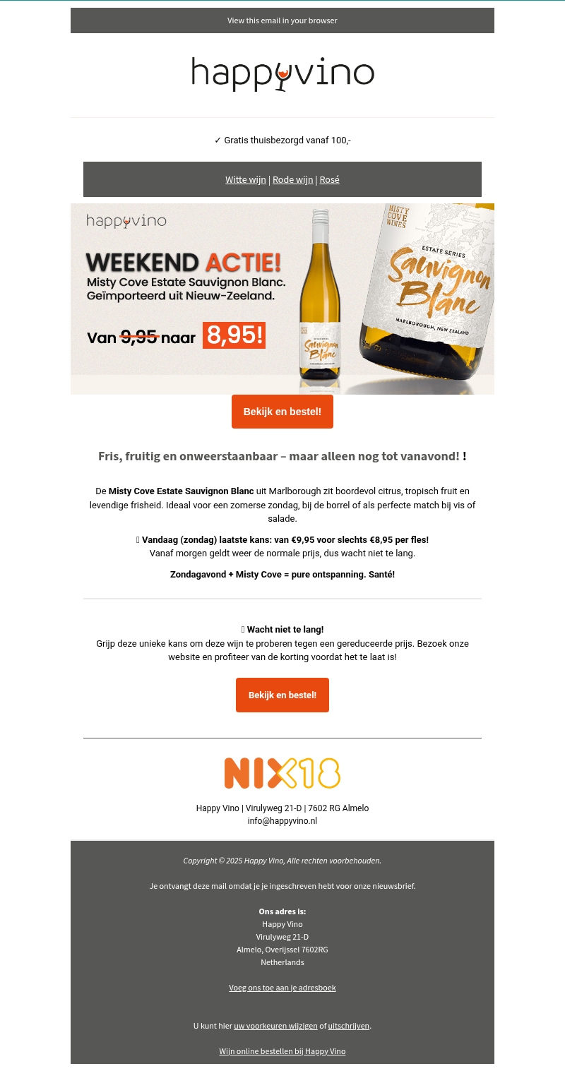 Laatste dag: Misty Cove Sauvignon Blanc voor €8,95!