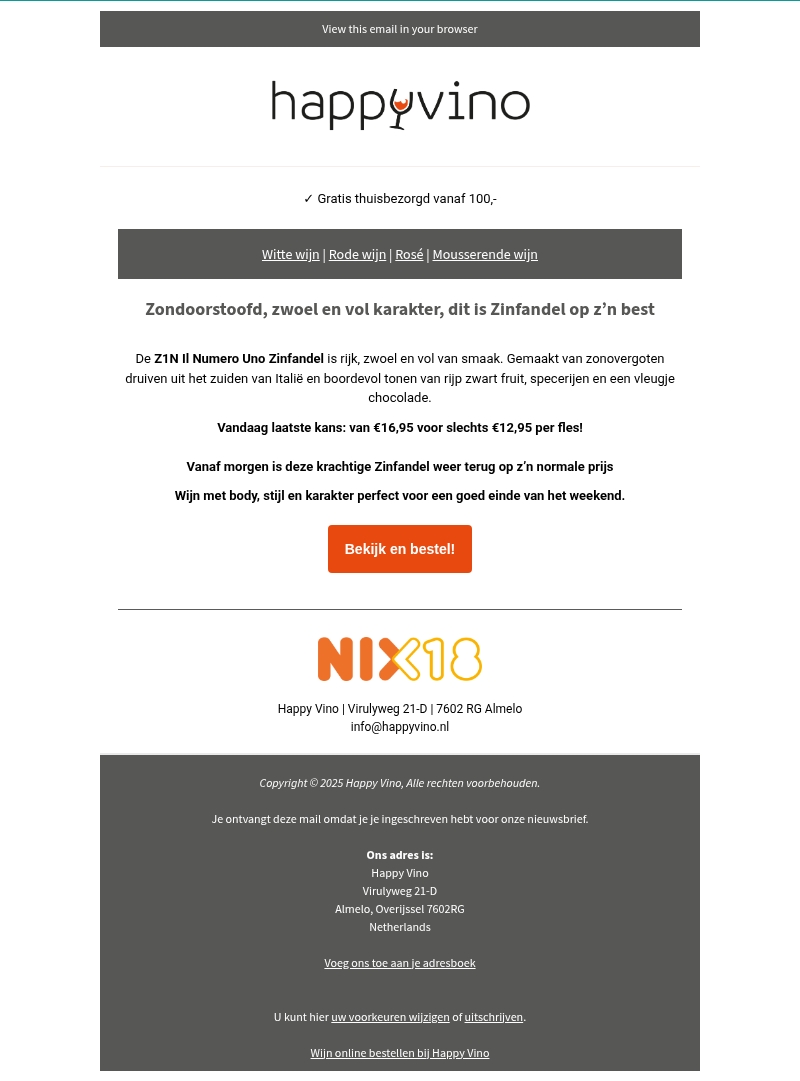 Laatste dag: Z1N Il Numero Uno Zinfandel voor €12,95!