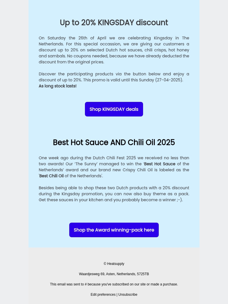 ONLY TODAY - 20% discount on HEATSUPPLY SAUCES🥳