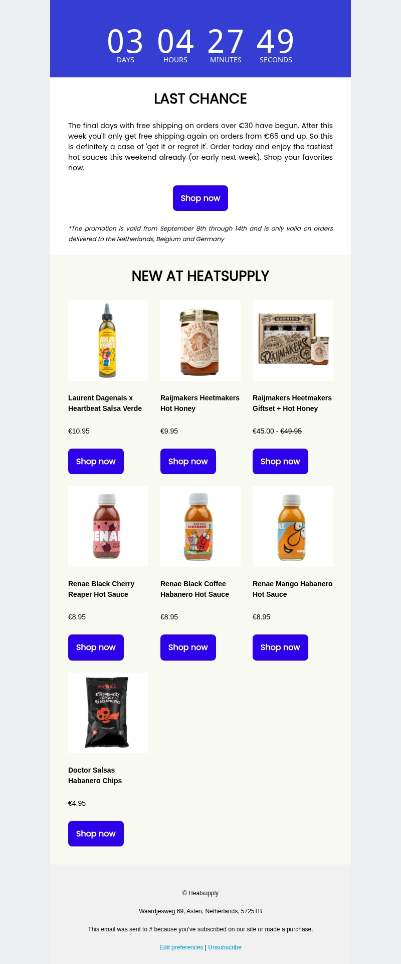 LAST REMINDER: Free Shipping on β¬30+ orders π