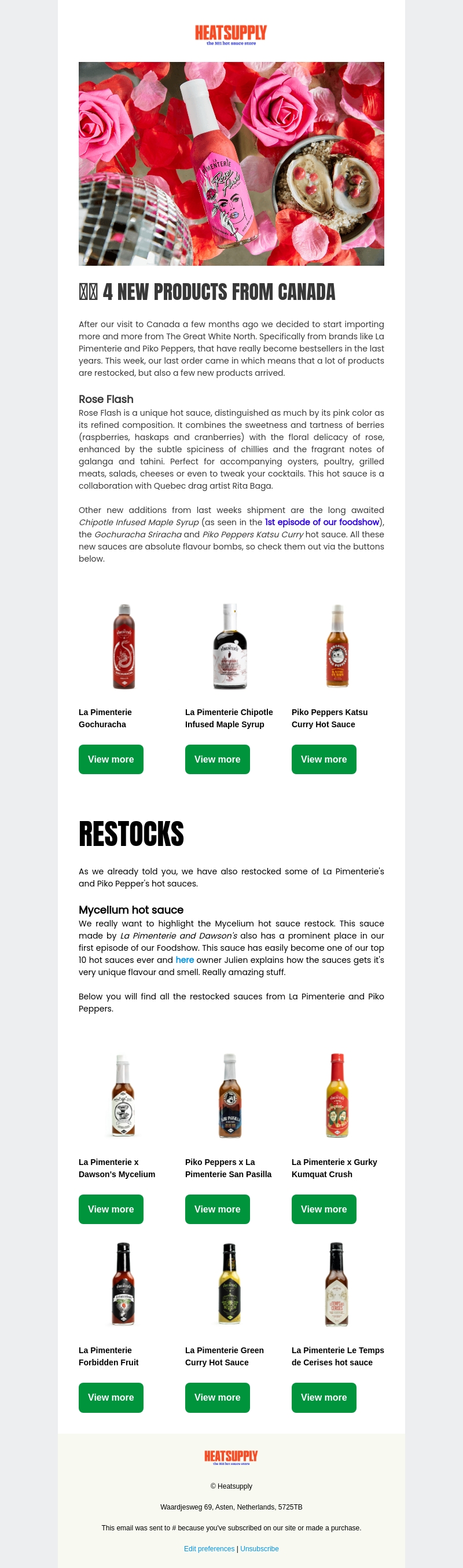 Deze week presenteren we nieuwe sauzen en een grote restock uit Canada. Ontdek de unieke Rose Flash saus en andere favorieten zoals de Chipotle Infused Maple Syrup. Geniet ook van de terugkeer van Mycelium hot sauce en andere toppers. Mis deze heerlijke smaken niet!