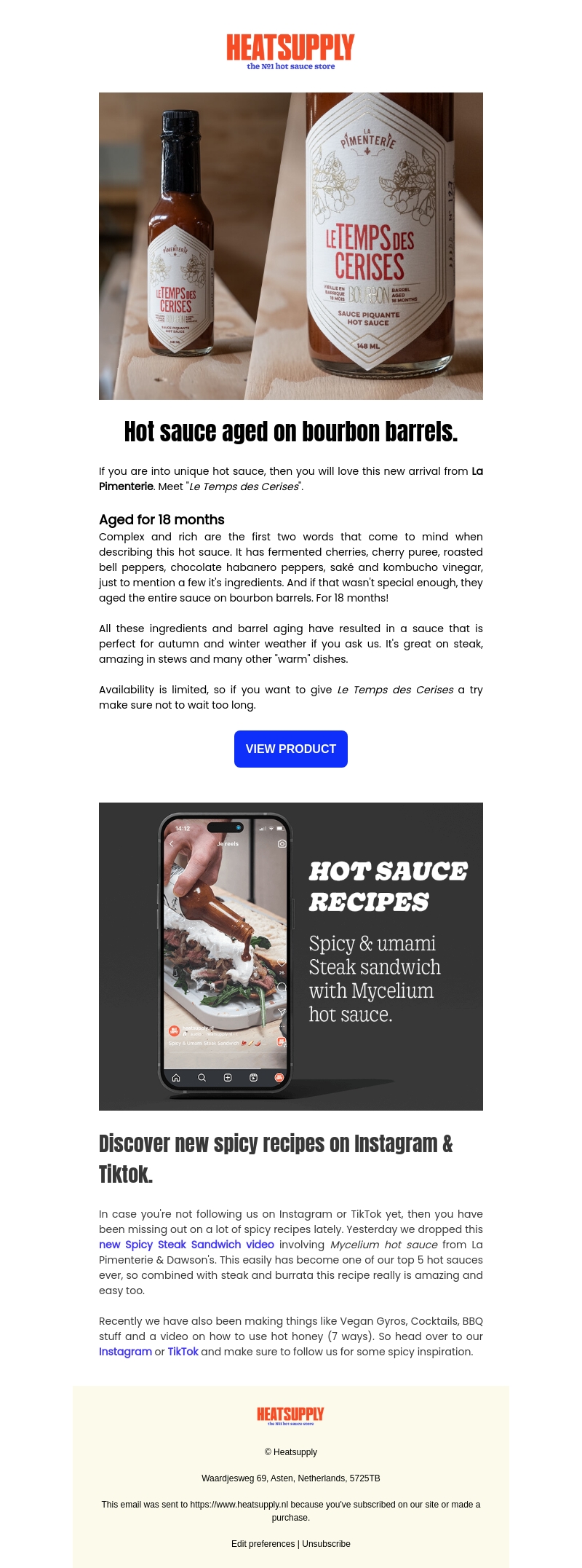 Maak kennis met Le Temps des Cerises van La Pimenterie, een unieke hot sauce gerijpt in bourbonvaten voor 18 maanden. Met complexe, rijke smaken zoals gefermenteerde kersen en verschillende pepers is deze saus perfect voor herfst en winter. Beperkte beschikbaarheid!