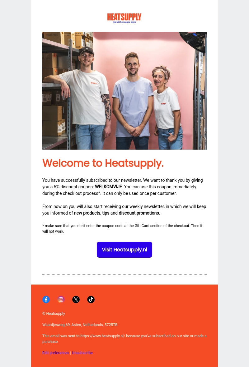 Welkom bij Heatsupply's nieuwsbrief! Bedankt voor je aanmelding. Geniet van een 5% kortingsbon met de code WELKOMVIJF. Ontvang nu wekelijks updates over nieuwe producten, handige tips en exclusieve kortingen.