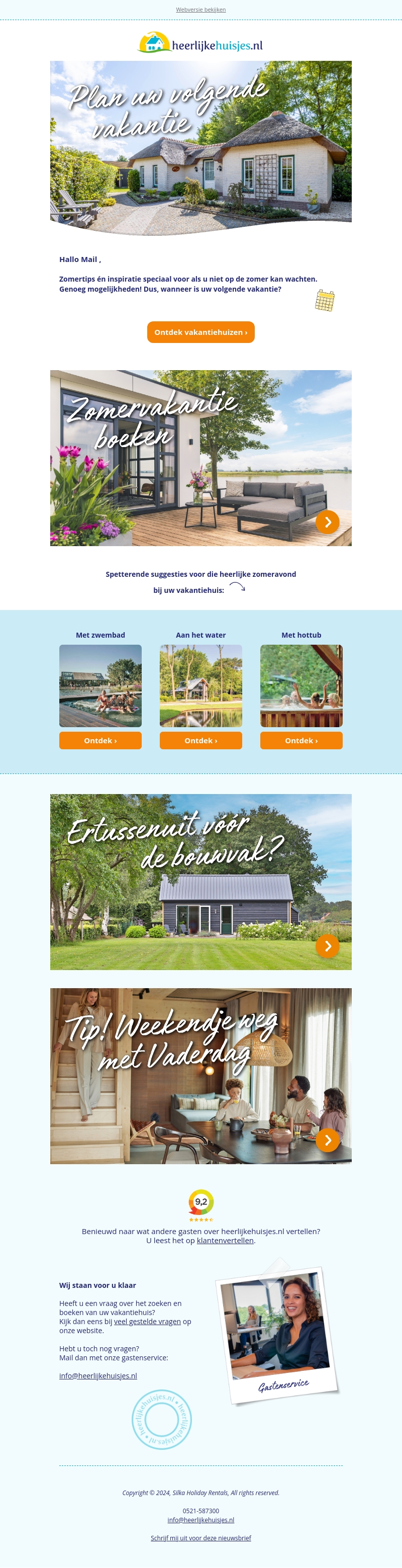Zomertips en inspiratie speciaal voor u als u niet op de zomer kan wachten. Van vakantiehuizen aan het water tot verblijven met zwembad of hottub. Plan snel uw volgende vakantie of weekendje weg voor Vaderdag bij Heerlijk Huisjes!