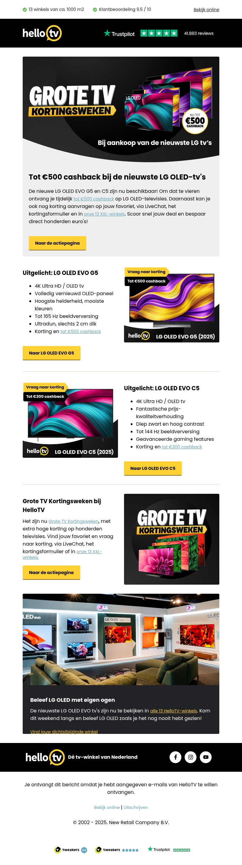 Scoor tot €500 cashback op de nieuwste LG OLED tv's