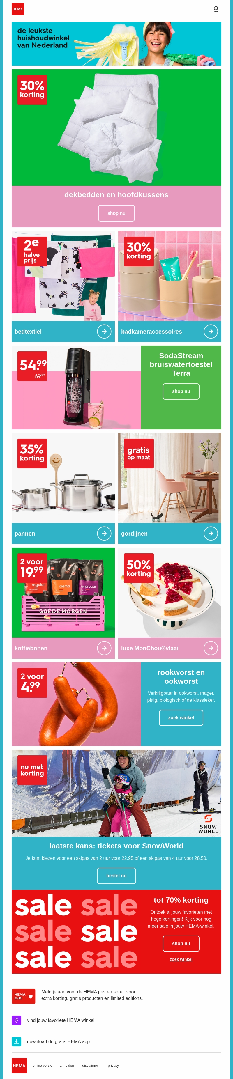 Profiteer nu van 30% korting op dekbedden en hoofdkussens bij de leukste huishoudwinkel van Nederland. Ontdek daarnaast onze andere aanbiedingen zoals badaccessoires, bedtextiel en koffievoordeel. Mis het niet en shop nu voor de beste deals. Voor de vroege vogels zijn er ook speciale aanbiedingen op skitickets. Voel je thuis met onze zachte en comfortabele producten. Beleef optimaal slaapcomfort met hoge kwaliteit en scherpe prijzen.