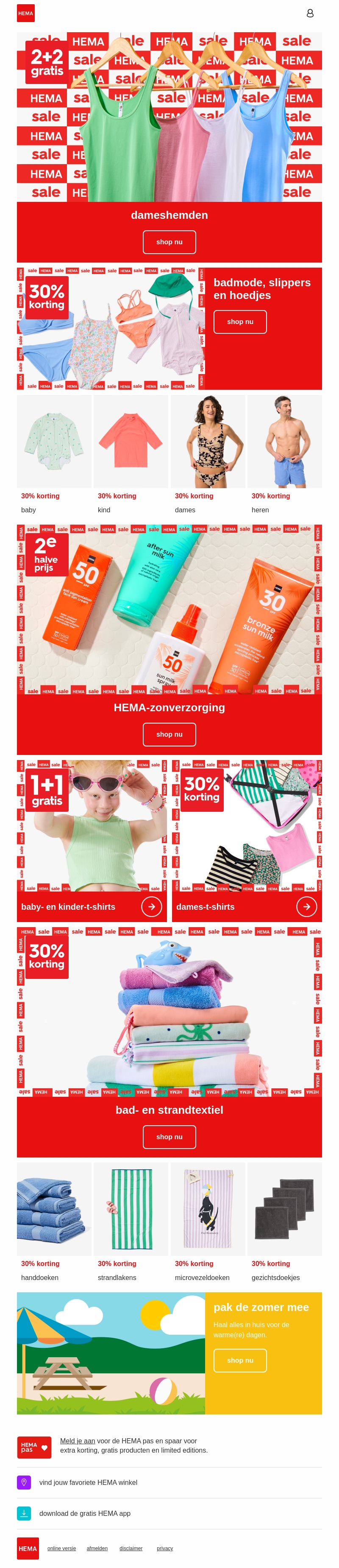 Bereid je voor op de zomerse dagen met de geweldige aanbiedingen van HEMA. Ontvang 2+2 gratis op dameshemden en 30% korting op badmode, zonverzorging, en meer. Shop nu voor de beste deals!