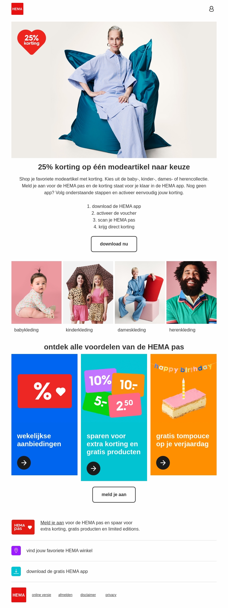 meld je nu aan voor de HEMA pas en de korting staat voor je klaar