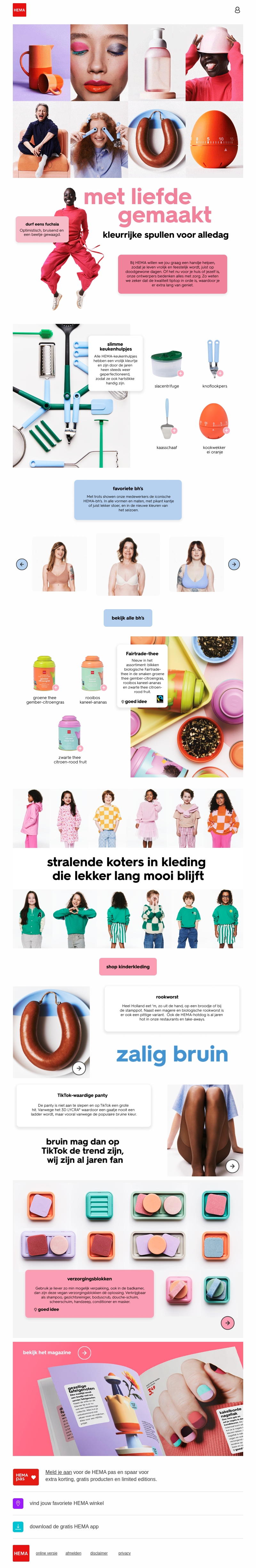 HEMA presenteert met liefde gemaakte, kleurrijke spullen die perfect zijn voor dagelijks gebruik. Van handige keukenhulpen tot vrolijke kleding, alles is er om je dag op te fleuren. Bekijk de nieuwste collecties en vind producten die je leven eenvoudiger en kleurrijker maken. Ervaar de kwaliteit en creativiteit van HEMA nu.