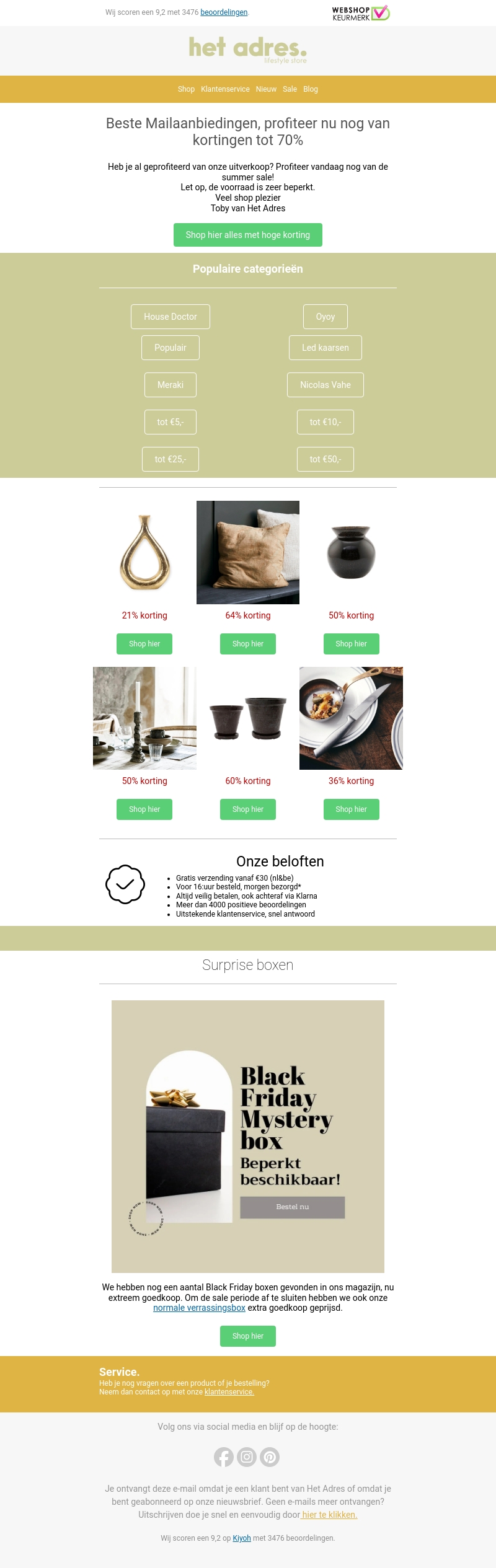 Heb je al geprofiteerd van onze Summer Sale? Profiteer snel van kortingen tot 70% op een selectie van producten. Wees er snel bij, want de voorraad is beperkt! Ontdek populaire categorieën en unieke aanbiedingen. Veel shop plezier gewenst!