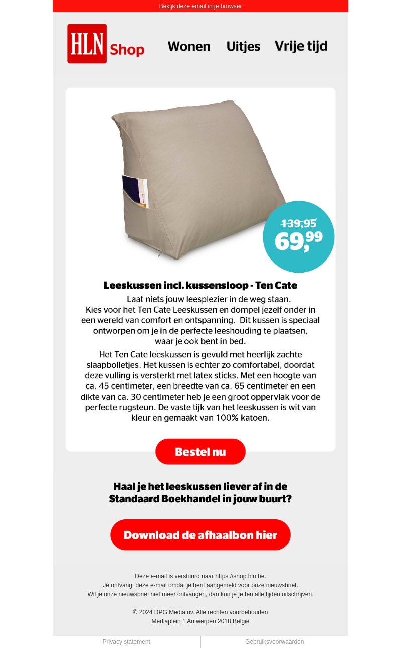 Laat niets jouw leesplezier in de weg staan met het Ten Cate Leeskussen. Deze kussen biedt ultiem comfort en ontspanning, speciaal ontworpen voor de perfecte leeshouding. Nu verkrijgbaar voor slechts €69,99, afgeprijsd van €139,95.