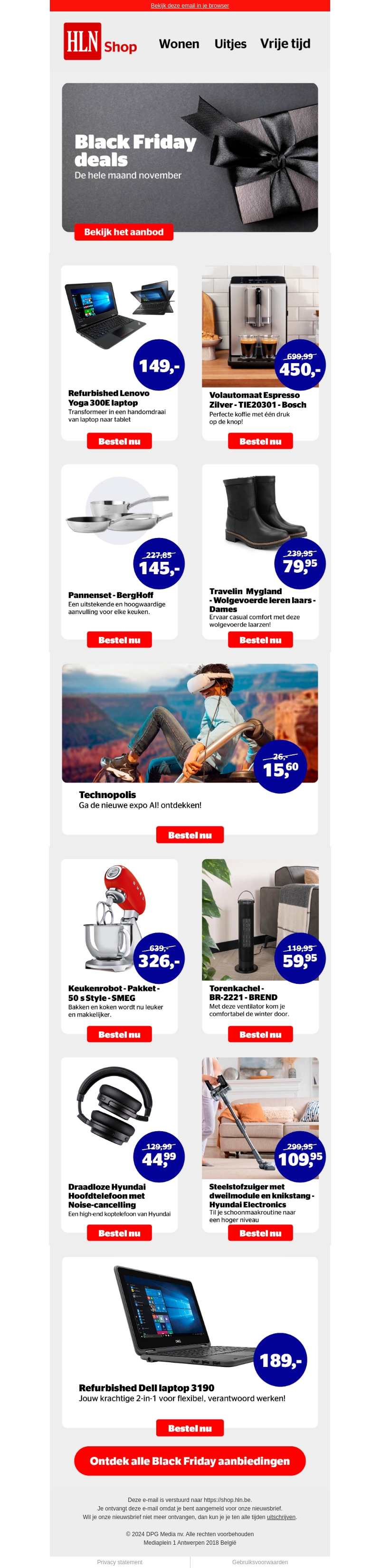 Ontdek spectaculaire kortingen tijdens de Black Friday maand bij HLN Shop. Van laptops tot huishoudelijke apparaten, er is voor ieder wat wils. Profiteer van geweldige deals en geniet van topkwaliteit producten voor minder. Bekijk nu alle aanbiedingen en maak je klaar voor een onvergetelijke koopervaring. Mis deze kans niet om luxe items tegen betaalbare prijzen te scoren.