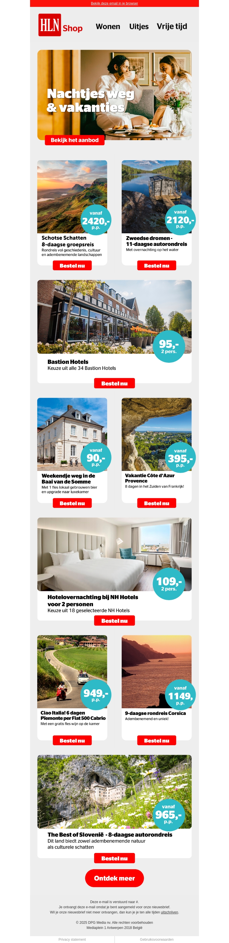 Beleef je volgende avontuur met onze geweldige reisaanbiedingen! Geniet van de prachtige Schotse landschappen, of maak een droomroute door Zweden. Kies voor een ontspannen verblijf in Bastion Hotels of verken de Côte d'Azur. Ontsnap even helemaal met onze unieke pakketten en creëer onvergetelijke herinneringen.