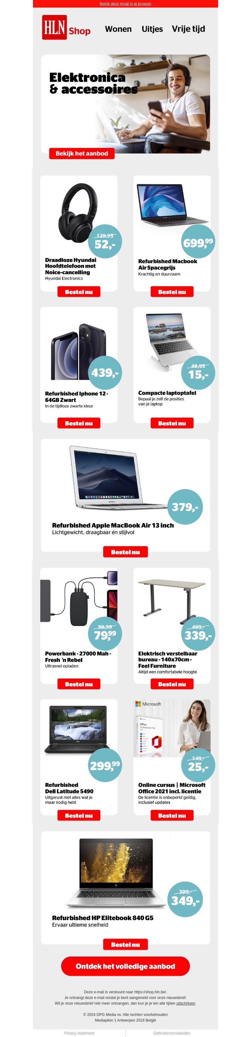 Verken onze nieuwste elektronische aanbiedingen, inclusief refurbished laptops, smartphones, koptelefoons en accessoires. Profiteer van scherpe kortingen en hoge kwaliteit. Beperkte voorraad, wees er snel bij. Bekijk het volledige aanbod op onze website.