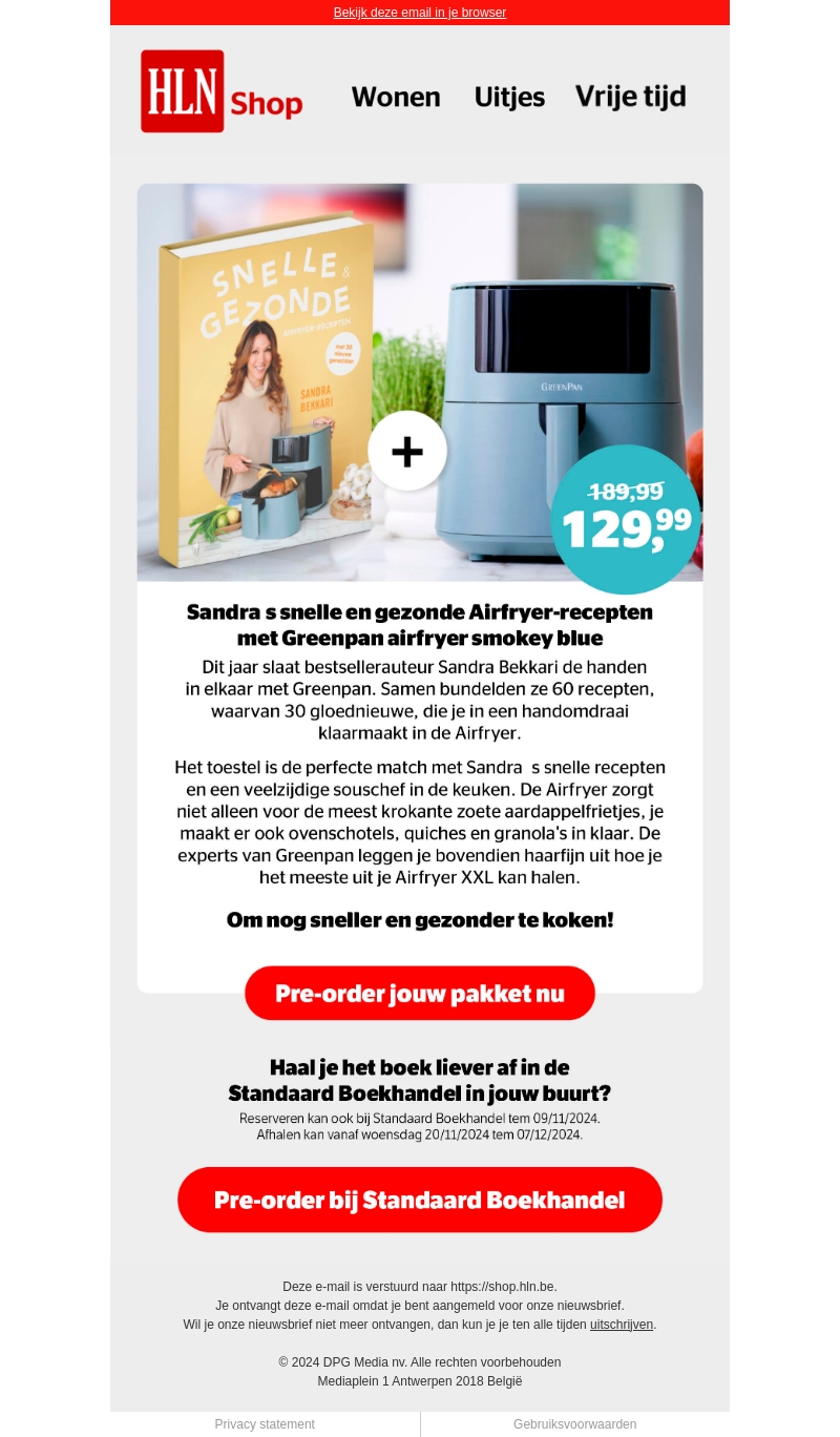 Profiteer van deze unieke actie met Sandra's snelle en gezonde Airfryer-recepten en de GreenPan Airfryer Smokey Blue. Geniet van een handig pakket voor snelle en smakelijke maaltijden. Inclusief 60 recepten, waarvan 30 compleet nieuw. Ideaal voor wie snel en gezond wil koken.