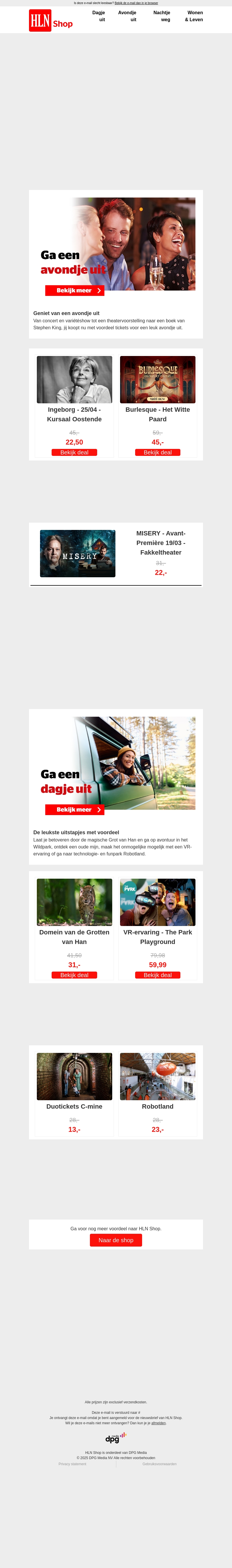 Ervaar onvergetelijke dagjes en avondjes uit met geweldige kortingen. Bezoek spannende shows zoals Burlesque en Misery. Geniet van avontuurlijke uitjes zoals het bezoeken van grotten of VR-ervaringen voor een geweldige prijs. Laat je betoveren door de beste deals voor een unieke belevenis.