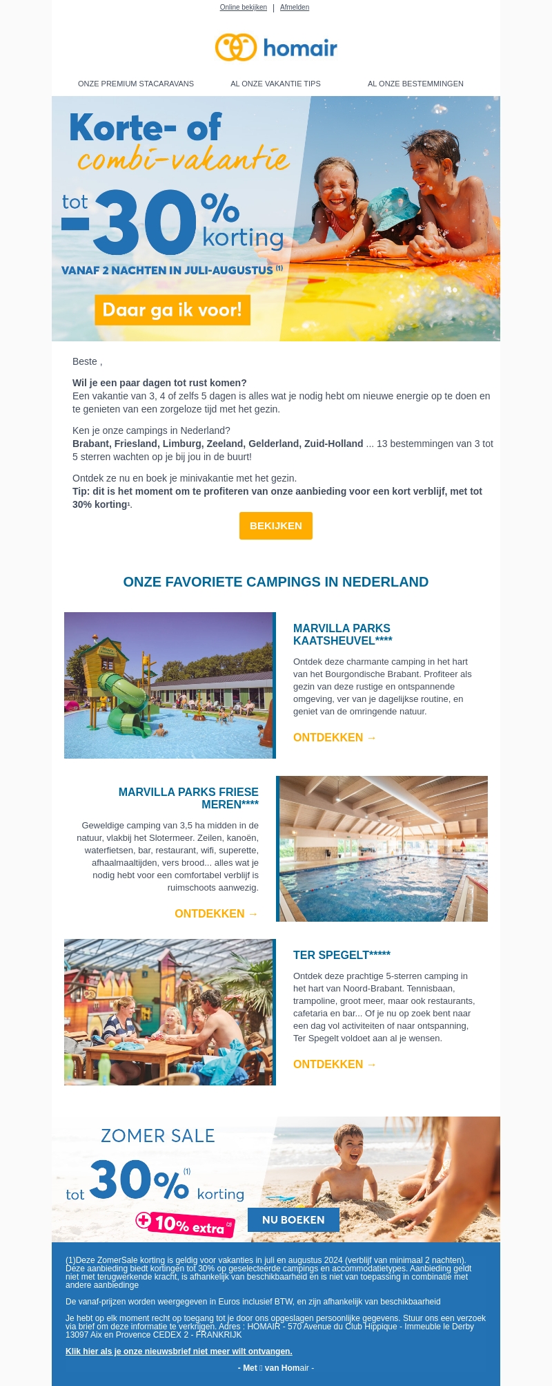 Boek nu een minivakantie en geniet van kortingen tot 30% op geselecteerde campings in Nederland. Ontdek prachtige bestemmingen in Brabant, Friesland, Limburg, Zeeland, Gelderland en Zuid-Holland. Grijp deze kans voor een ontspannen uitje met het gezin!