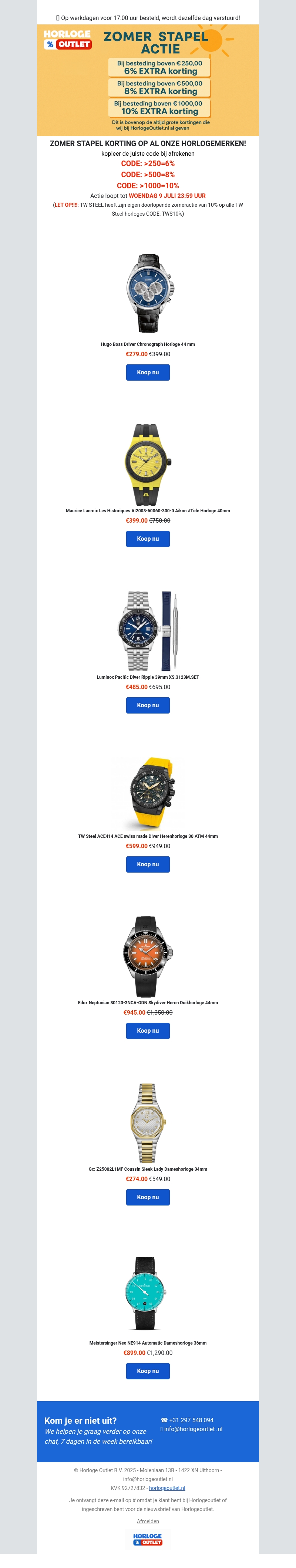 De aankomende 7 dagen zomer stapel korting bij horlogeoutlet.nl