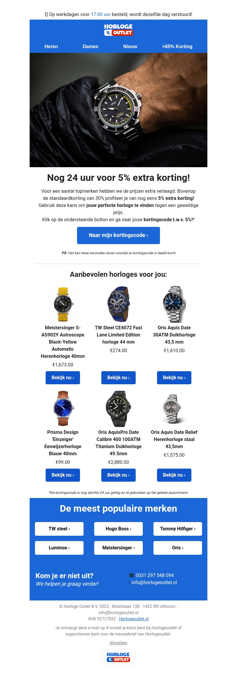 📣CODE ORANJE bij horlogeoutlet.nl - 10% extra korting!🚨
