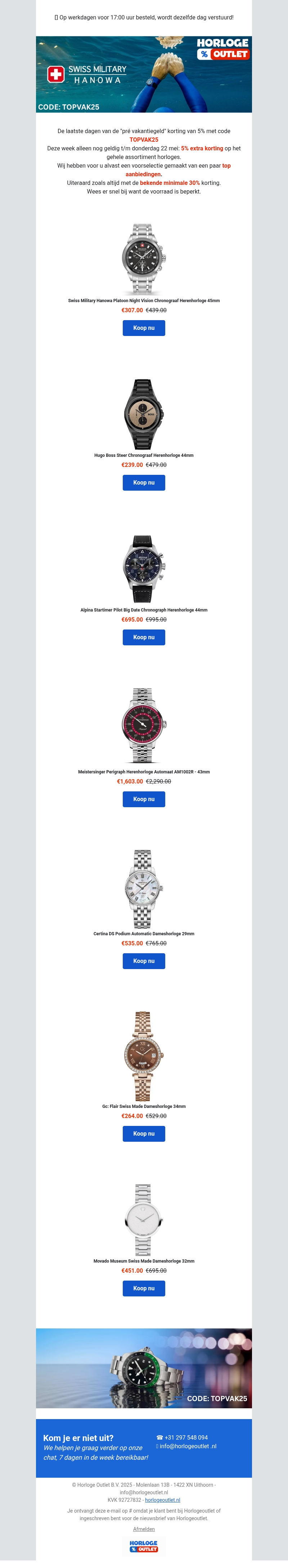 🎅 horlogeoutlet.nl is de hele Kerst open - 10% Extra korting🦌🦌!
