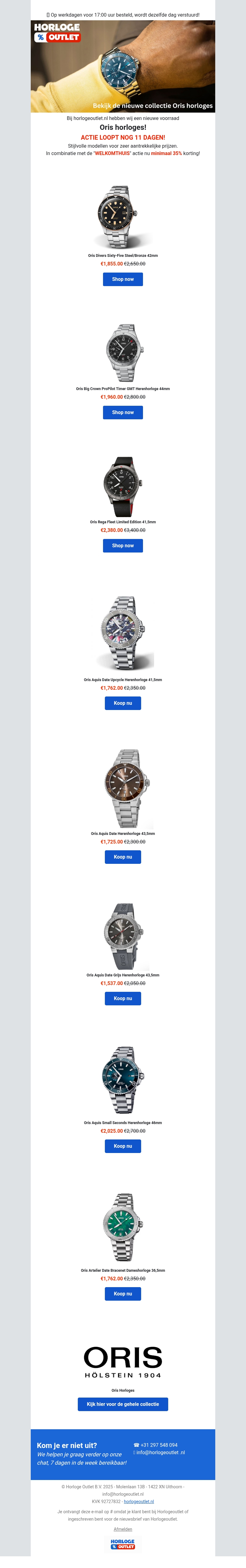 Reminder - Nieuwe Collectie Oris horloges bij horlogeoutlet.nl!