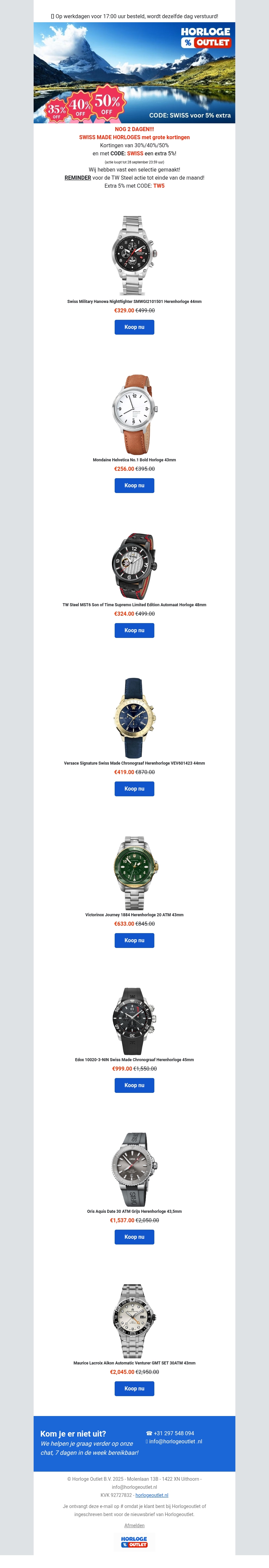Reminder - Swiss made horloges nu EXTRA goedkoop: 30% 40% 50% korting!