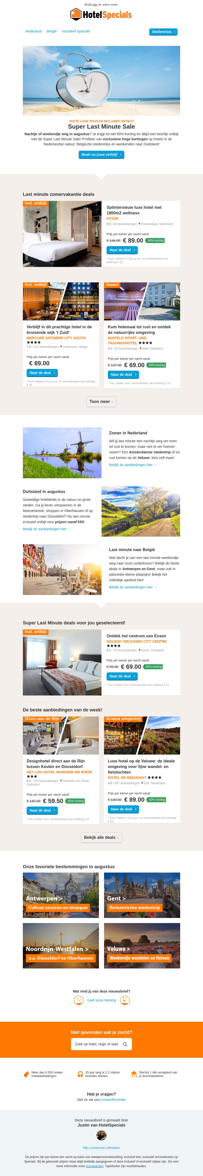 Ontdek de Super Last Minute Sale bij HotelSpecials met vaste lage prijzen en exclusieve voordelen. Boek je zomervakantie in Nederland, België of Duitsland en geniet van luxe accommodaties met ontbijt inbegrepen. Mis deze kans niet om te profiteren van fantastische deals.