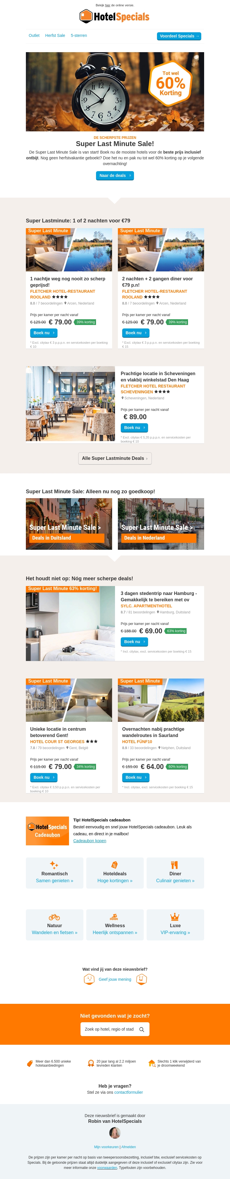 Mis de kans niet op de beste hoteldeals met onze Super Last Minute Sale! Geniet van verblijven inclusief ontbijt in Nederland, Duitsland en België tegen gereduceerde prijzen. Of u nu op zoek bent naar een stadsuitje of een natuurrijke ervaring, er is voor ieder wat wils. Boek nu en bespaar tot wel 60% op geselecteerde hotels. Laat u verwennen in luxe of ontspan in de natuur. Ontdek al onze aanbiedingen en grijp uw kans!