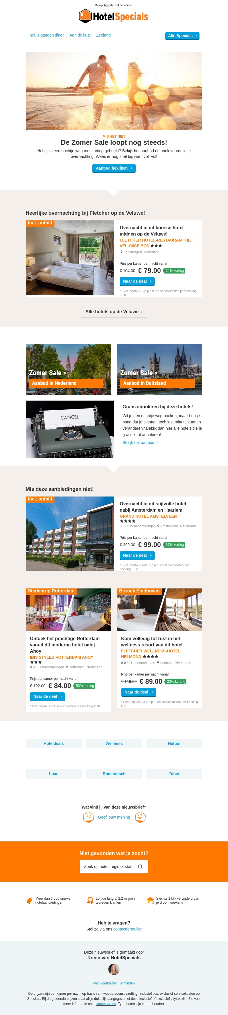 De Zomer Sale loopt nog steeds! Bekijk het nieuwste aanbod van mooie hoteldeals in binnen- en buitenland. Of je nu op zoek bent naar een romantisch uitje of een luxe overnachting, je vindt het allemaal hier. Mis deze aanbiedingen niet en boek nu jouw ideale verblijf.