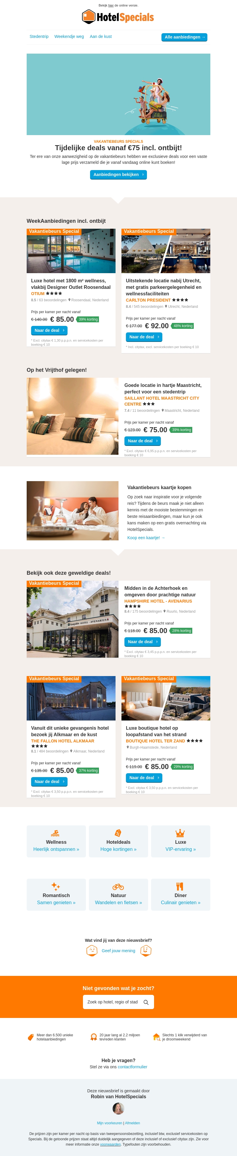 Boek nu uw ideale hotelverblijf met onze exclusieve aanbiedingen vanaf slechts €75 per nacht, inclusief ontbijt. Geniet van wellnessarrangementen in luxe hotels of kies voor een stedentrip in het hart van Maastricht. Deze tijdelijke deals bieden u de perfecte kans om te ontsnappen naar prachtige locaties in Nederland. Verken de kust, geniet van natuurpracht en laat u verwennen in designhotels. Pak deze kans om met kortingen deze winter bijzondere herinneringen te maken.