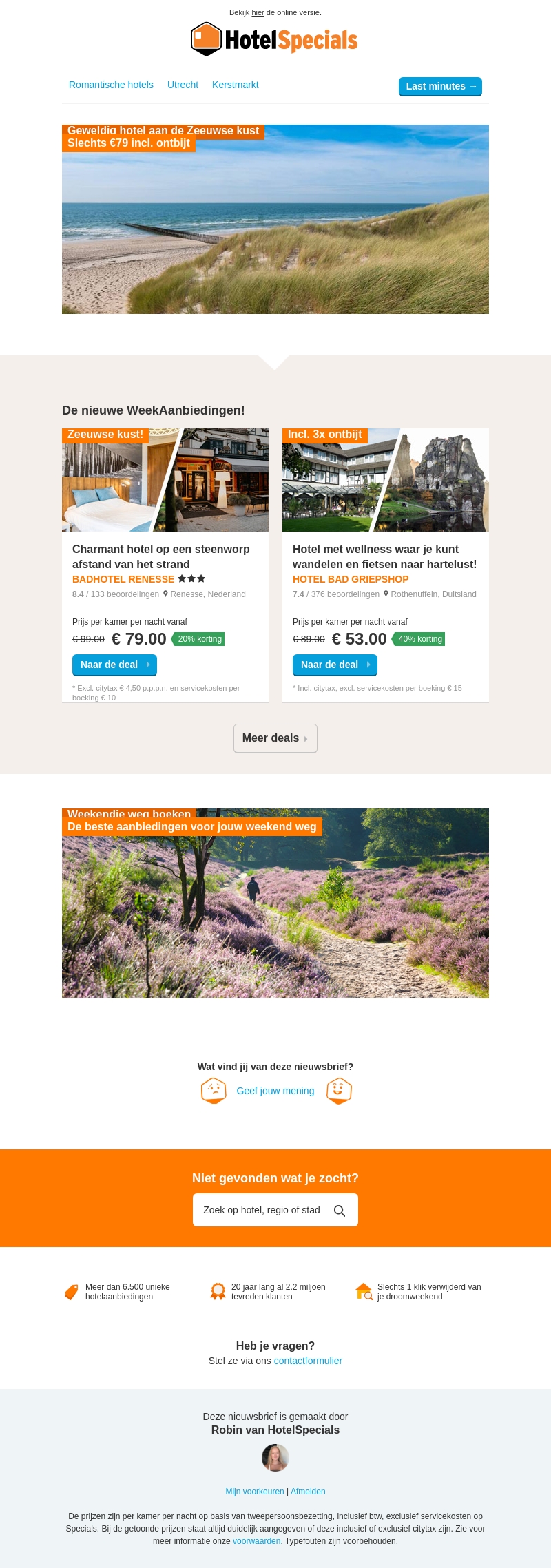 Ontdek geweldige hotelaanbiedingen aan de Zeeuwse kust met kortingen tot 40%. Verblijf in prachtige hotels zoals Bad Hotel Renesse en Hotel Bad Grieschop. Boek een kamer vanaf slechts €79 inclusief ontbijt. Ideaal voor een ontspannen weekend weg of een spontane last-minute reis.
