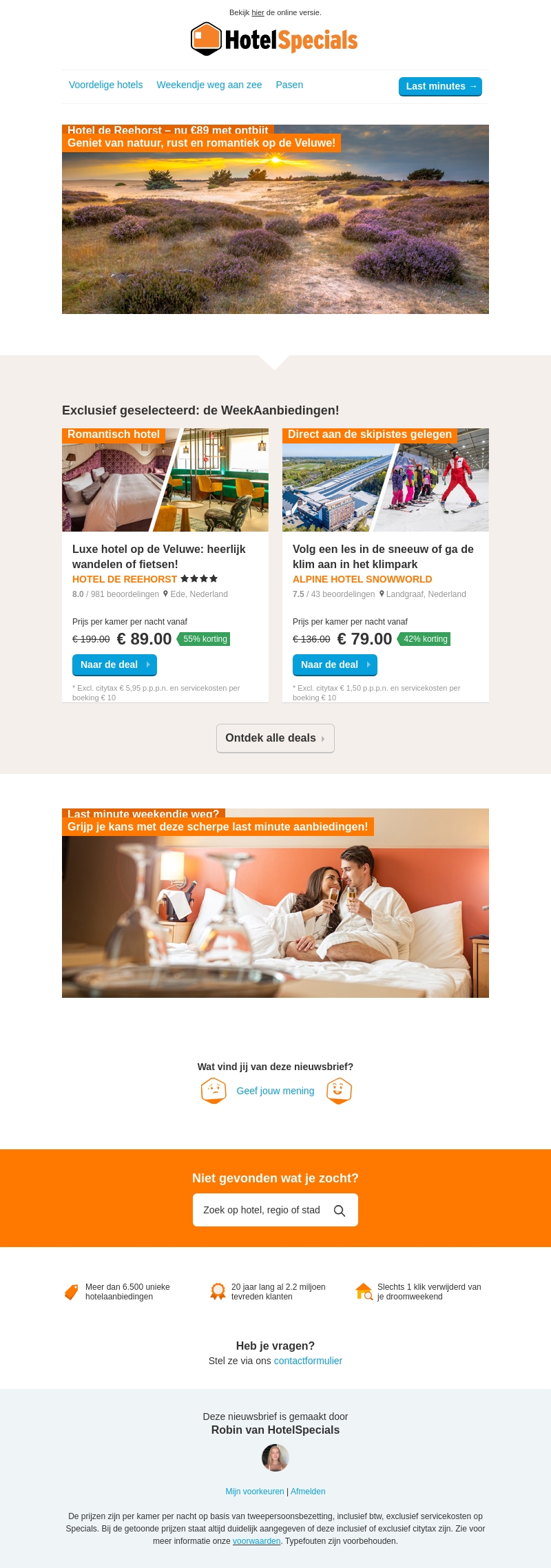Onze outlet hoteldeals zijn aangevuld
