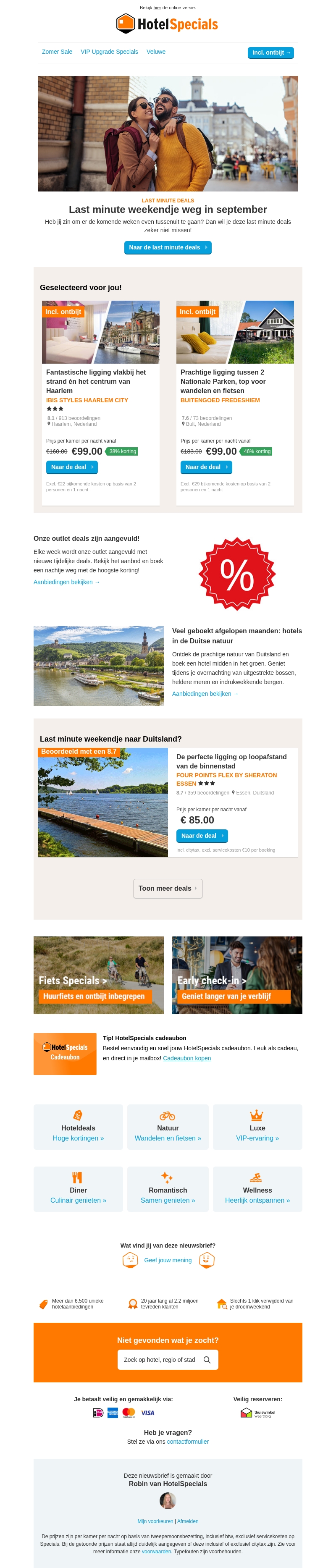 Onze outlet hoteldeals zijn aangevuld
