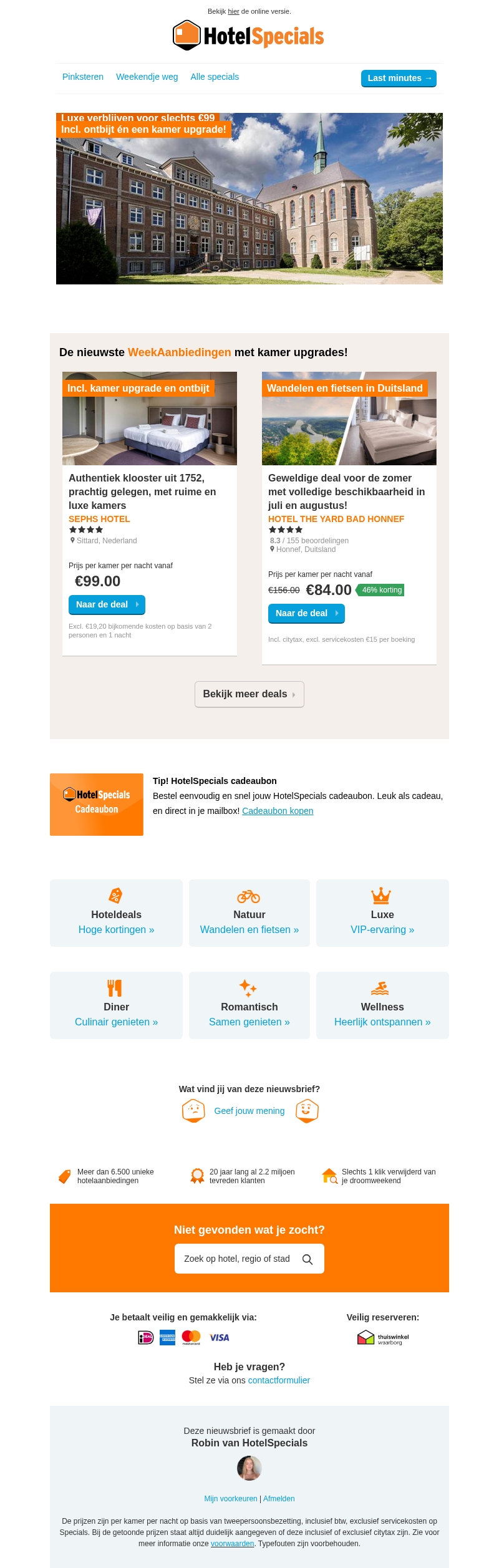 Onze outlet hoteldeals zijn aangevuld