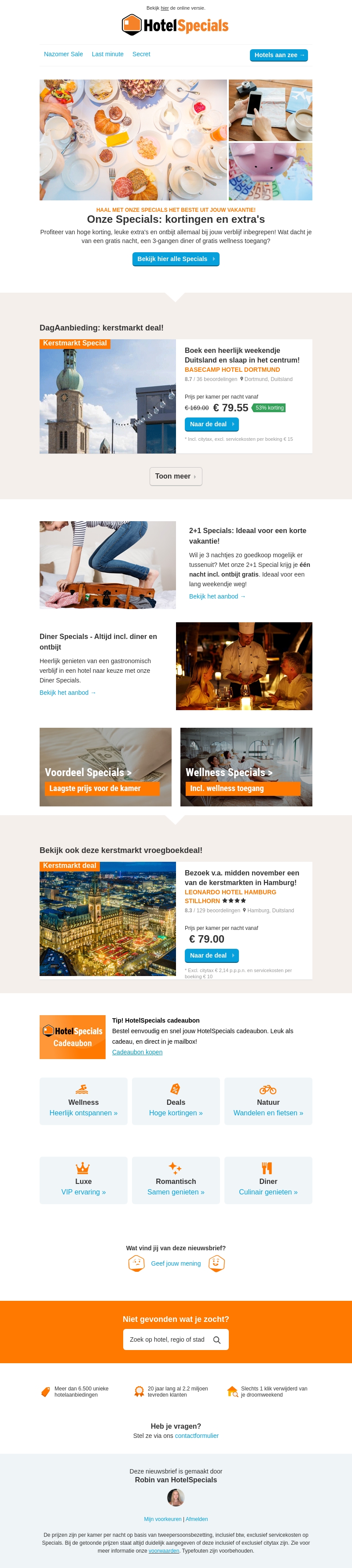 Haal het meeste uit je vakantie met de exclusieve specials en kortingen van HotelSpecials. Geniet van deals met ontbijt, wellness toegang en meer. Mis niet de kerstmarkt deals en speciale arrangementen voor jouw verblijf.