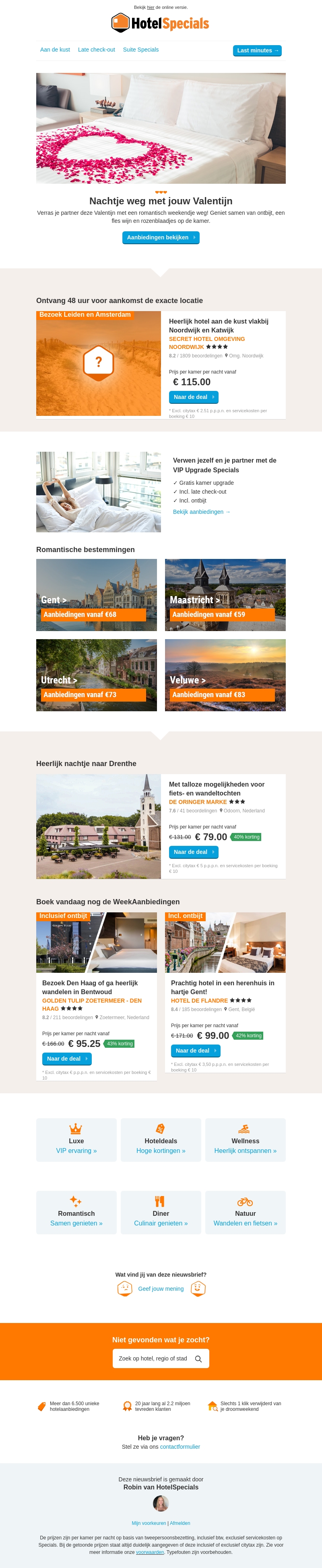 Verras je partner dit Valentijnsweekend met een overnachting in een luxe hotel! Geniet van exclusieve deals inclusief ontbijt en een fles wijn op de kamer. Kies uit bestemmingen zoals Utrecht, Gent, en meer. Ontvang een gratis upgrade dankzij onze VIP Upgrade Specials. Boek nu en bespaar met weekaanbiedingen!